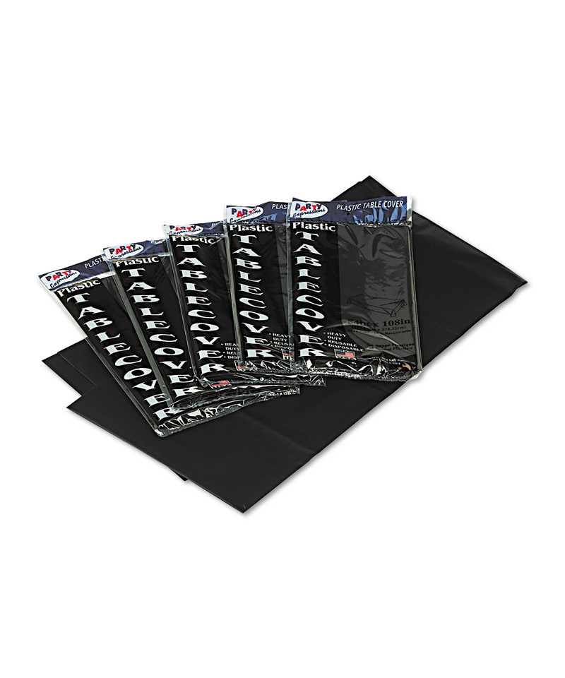 Heavyweight plastic tablecloths are reusable and disposable. Each 54" x 108" tablecloth fits one banquet-size table or two card tables for plenty of seating space.