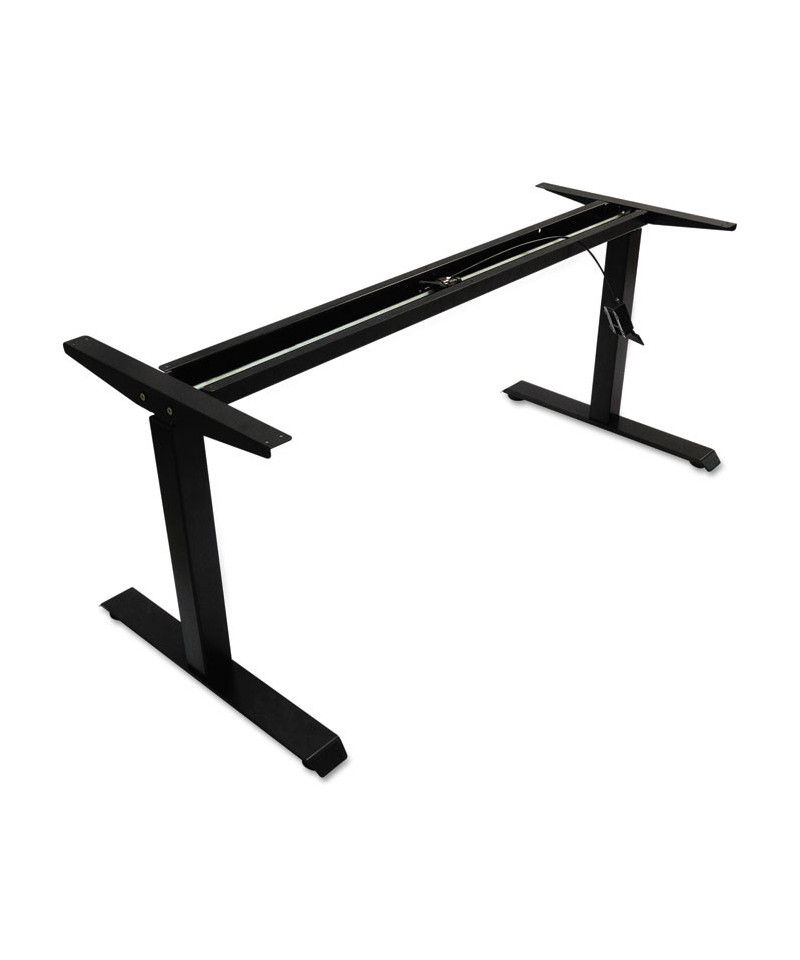 Set the perfect height when sitting or standing. Height-adjustable table base with pneumatic-control lift-assist delivers a 13" height range, from 26.25" to 39.63" (no electricity required). Though designed specifically for use with ALETT Series Reversible Laminate Table Tops (sold separately), these durable bases accommodate most common table tops ranging from 59" to 72" in width and 24" to 30" in depth. Strong, powder-coated steel frame features cross bars to prevent racking while enhancing your table's overall stability. Adjustable leveling glides help you compensate for uneven floors. Maximum lift capacity of 85 lb (including the sold-separately table top or worksurface). Table tops and bases are sold and shipped separately—ORDER BOTH.