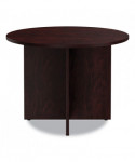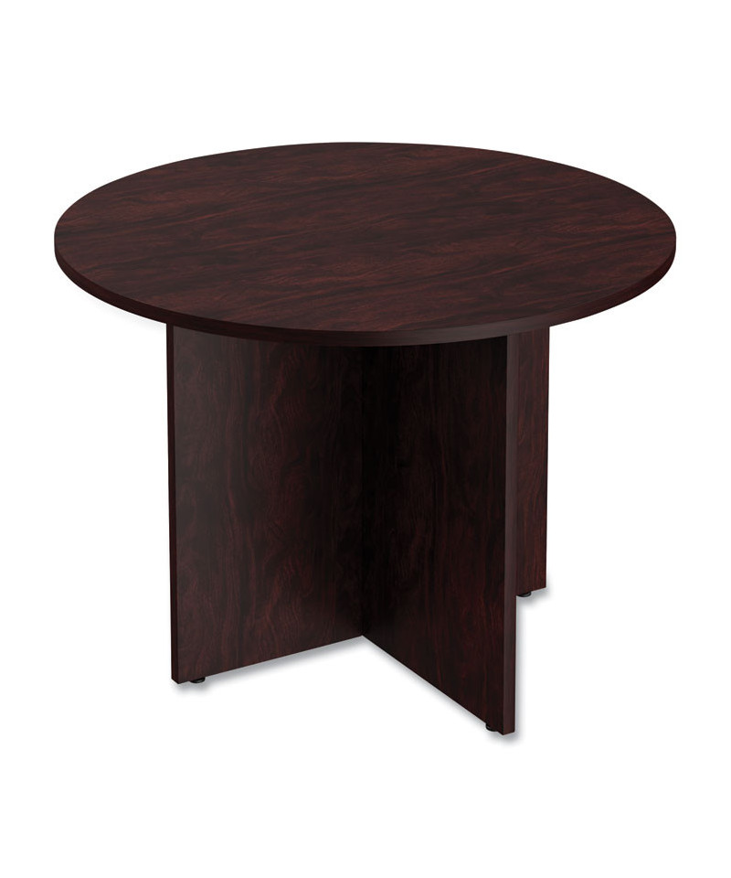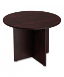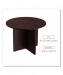 A popular table style adds extra work surfaces for quick-huddle setups or any conference room. Commercial-grade, 1" thick laminate top is water, scratch, and dent-resistant. The durable table features a protective 3 mm edge banding. The straight leg X-base takes up minimal space to maximize leg room and has leveling glides to help compensate for uneven floors. Matches Alera Valencia Series modular desking components.