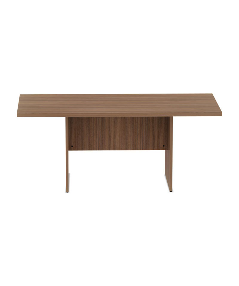 Classic rectangular conference tables work for meetings, breakrooms, or quick-huddles. Commercial-grade, 1.25" thick laminate top is water-, scratch-, and dent-resistant. Protective 3 mm edge banding helps prevent nicks. Modesty panel for privacy and stability. Leveling glides help compensate for uneven floors. Matches Alera Valencia desking components.