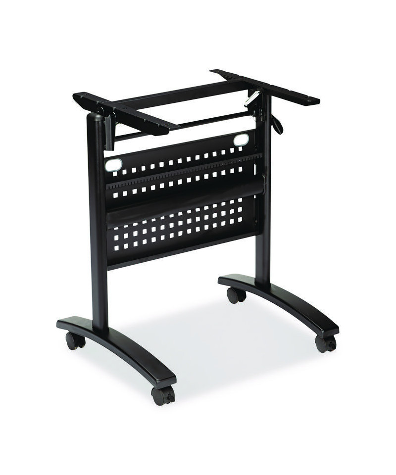 Perfect for modular workspaces, this flip-training table base features a flip?down nesting design for efficient storage, integrated cable-management channels, and a detachable modesty panel. Locking casters allow for safe mobility or glide for fixed placement. Constructed of powder?coated steel, it resists chipping and scratching. Top and Base sold and shipped separately—ORDER BOTH.