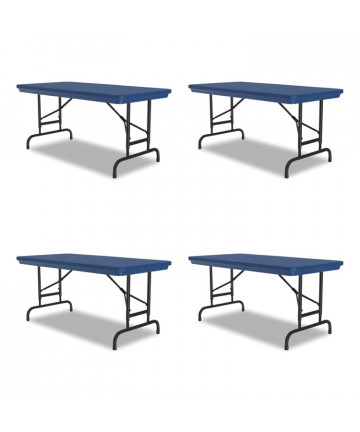 Wear-resistant, 3/4" thick melamine top with vinyl T-mold edge. Melamine sealed underside helps prevent moisture absorption. Full perimeter steel skirt support with plastic corners to protect surface when stacking. 1" diameter, heavy gauge steel legs with heavy-duty foot caps to protect floors. Heavy-duty leg supports and gravity leg lock for secure set-up. Folds to 2-1/2" for compact storage.