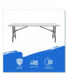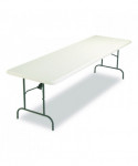Folding tables so multi-functional you'll wonder how you lived without them. Industrial-grade construction more than stands up to the tough demands that offices, schools, hotels and conference centers make. An attractive, contemporary design ensures they'll fit in wherever you place them. Dent- and scratch-resistant, easy-to-clean top is fabricated of blow-molded high-density polyethylene and features soft-beveled radius edges. Powder-coated, round metal-tube legs feature fold-out braces for extra strength and stability. Ideal for indoor and outdoor use. Tables nest together when stacked, with their legs folding into protective channels, to help you maximize your available storage space.