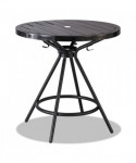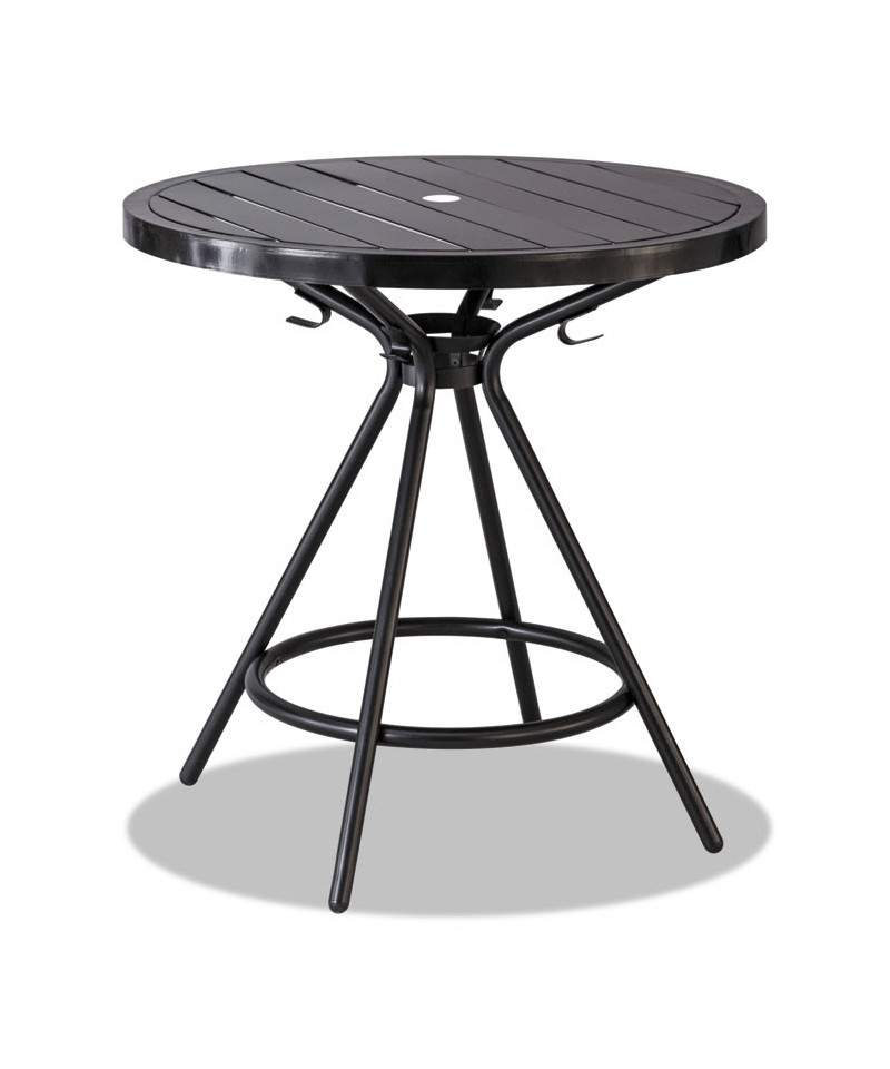 Versatile, highly functional table is ideal for outdoor use and easily adaptable for indoor use. Features a durable steel construction that's UV- and weather-resistant, along with an opening on the tabletop to accommodate an umbrella (not included). The table also offers hooks underneath the tabletop to hang purses, backpacks, jackets and other belongings. Great for use in outdoor meeting and gathering areas, as well as a variety of indoor spaces. Pair with Cogo™ Steel Outdoor/Indoor Chairs (sold separately) to complete your look.