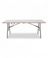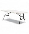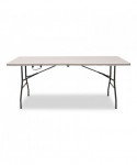 Versatile table is perfect for indoors or outdoors. Convenient rectangular folding table sets up quickly when extra table or counter space is needed. Blow-molded polyethylene top is water and stain resistant to ensure it won't crack or stain. Strong, durable, powder-coated metal construction withstands dents and scratches. Slide lock feature enhances table stability once opened. Legs fold flush into table creating a flat surface for easy storage and stacking. Non-marring foot caps to prevent floor damage.