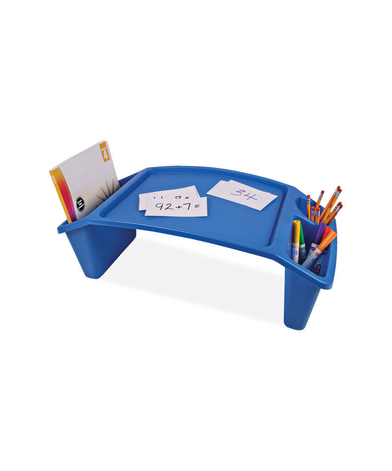 There's no better place for kids to get creative than deflecto®'s Antimicrobial Lap Tray. Whether they're reading, drawing, or coloring, your child will have everything they need within reach. This durable, lightweight lap desk features deep side pockets to hold pencils, crayons, and other childhood essentials. It's perfect for serving packaged snacks, or use it as a bed tray when your child isn't feeling well. The all-in-one lap desk is portable and lightweight so you can take it with you wherever you go. Product is protected by SteriTouch® which is an antimicrobial agent used to inhibit the growth of odor-causing microorganisms, and mold and mildew, which may degrade the product.