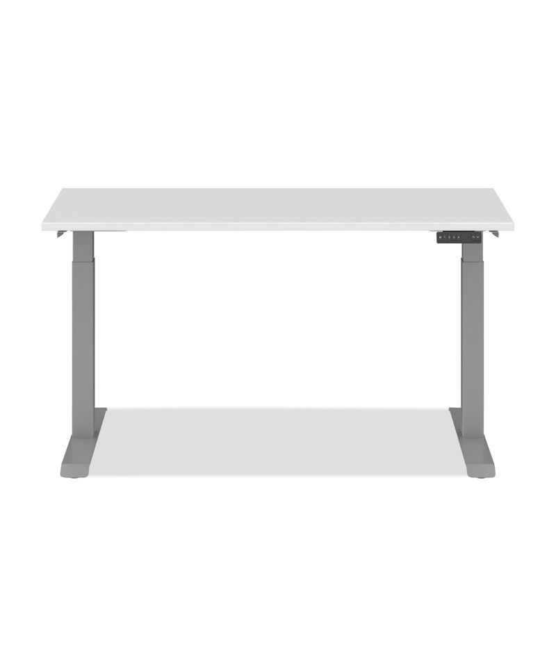 Set the perfect height when sitting or standing, when you choose this electric, three-stage, height-adjustable table. Durable, powder-coated steel base features a 250 lb maximum lift capacity, a 26.13" lift/lower range (from 21.63" to 47.75") 60" x 24" table top, as well as a one-touch, four memory setting controller. Dual-motors provide speeds of up to 1.5" per second (depending on load). Adjustable leveling glides help you compensate for uneven floors. Base includes integrated cable-management channels.