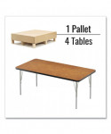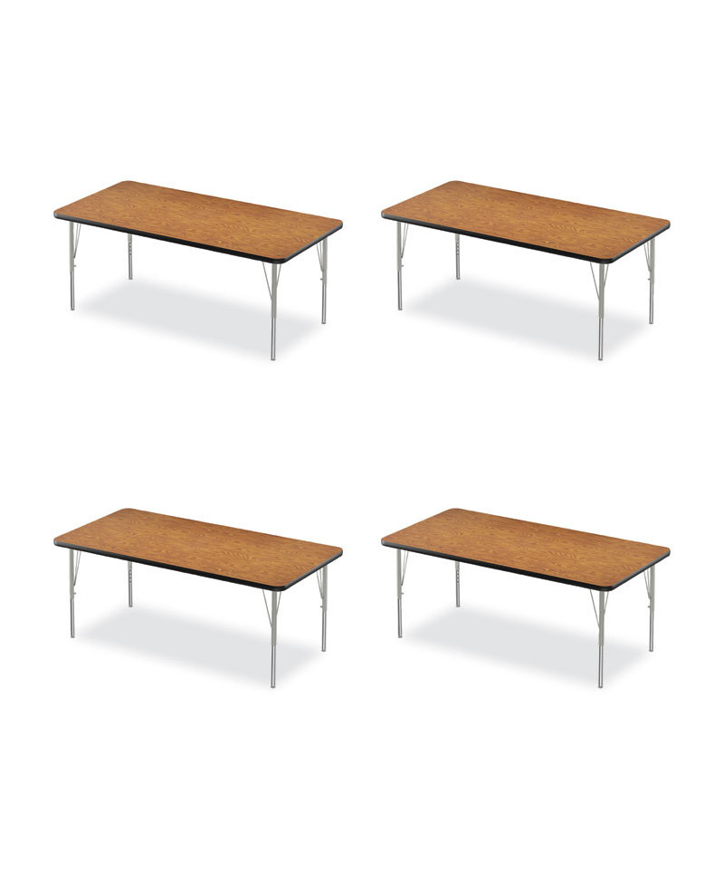 Adjustable Activity Table, Rectangular, 60" x 30" x 19" to 29", Medium Oak Top, Black Legs, 4/Pallet