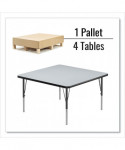 Adjustable Activity Tables, Square, 48" x 48" x 19" to 29", Gray Top, Black Legs, 4/Pallet