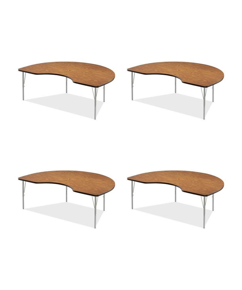 Adjustable Activity Table, Kidney Shape, 72" x 48" x 19" to 29", Medium Oak Top, Gray Legs, 4/Pallet