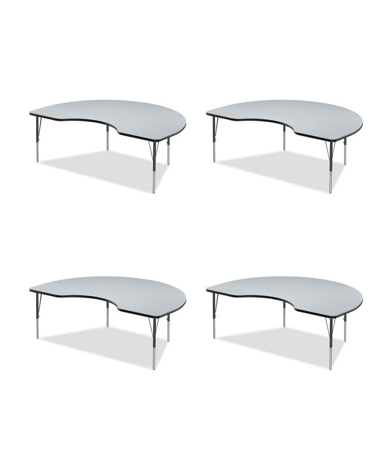 Adjustable Activity Tables, Kidney Shaped, 72" x 48" x 19" to 29", Gray Top, Gray Legs, 4/Pallet