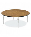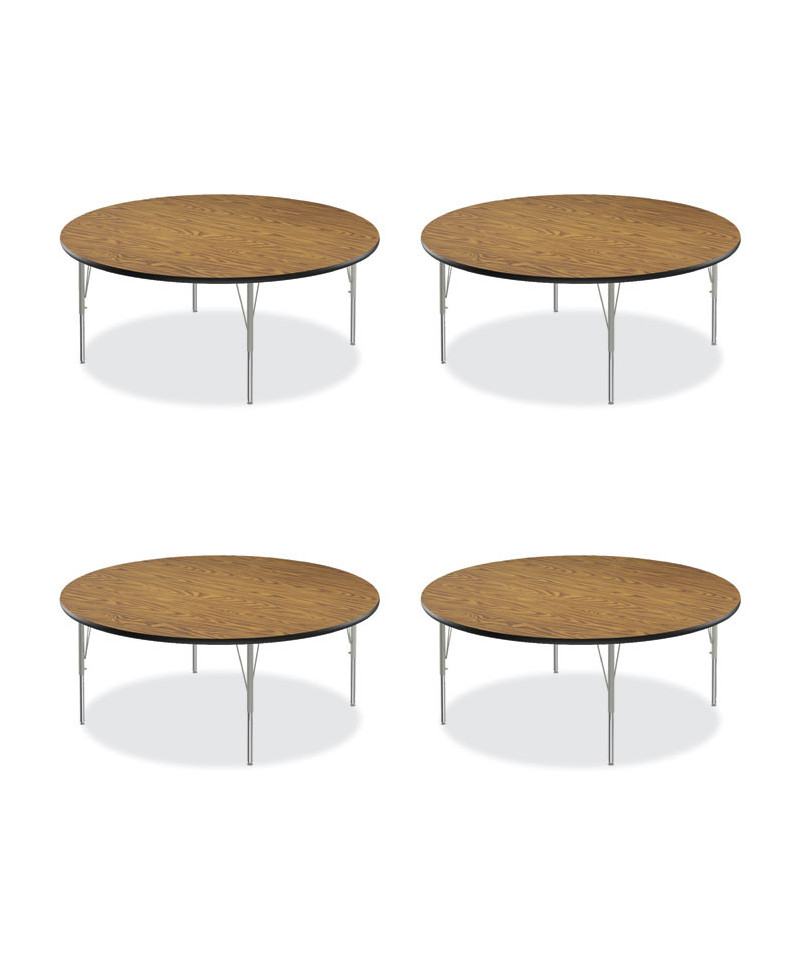 Height Adjustable Activity Tables, Round, 60" x 19" to 29", Medium Oak Top, Gray Legs, 4/Pallet