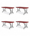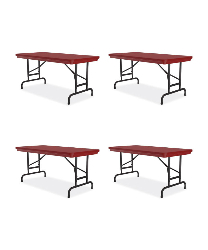 Adjustable Folding Table, Rectangular, 48" x 24" x 22" to 32", Red Top, Black Legs, 4/Pallet