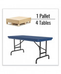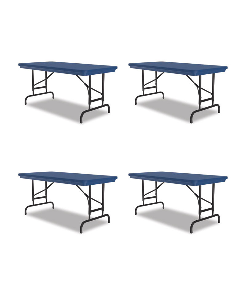 Adjustable Folding Table, Rectangular, 48" x 24" x 22" to 32", Blue Top, Black Legs, 4/Pallet