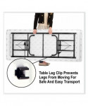 Heavy-duty, height-adjustable, blow-molded plastic folding tables adapt to nearly any event, any task, indoors or out. Simply adjust the height in 1" increments to fit the occasion. Virtually indestructible, blow-molded plastic tabletop is lightweight, waterproof, scratch- and stain-resistant. Integrated welded-steel frame and strong steel legs ensure maximum stability. Integrated leg locks automatically slip into place as you fold the legs down to ensure your set-up remains standing. Tables ship on a pallet to accommodate commercial addresses with loading docks.