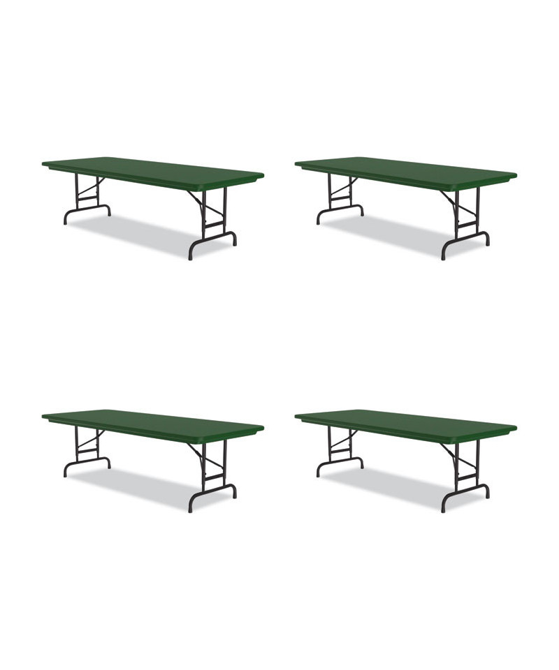 Adjustable Folding Tables, Rectangular, 72" x 30" x 22" to 32", Green Top, Black Base, 4/Pallet