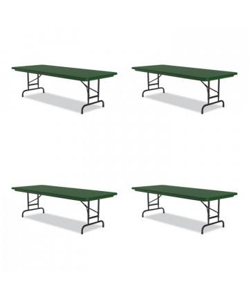 Do more with Correll® Commercial Height Adjustable Plastic Folding Tables. These heavy-duty tables can adapt to nearly any event, any task, indoors or out. Simply adjust the height in 1" increments to fit the occasion. Virtually indestructible, blow-molded plastic tabletop is lightweight, waterproof, scratch- and stain-resistant. And the top's color isn't just surface deep; it goes all the way through, eliminating the possibility of it fading or wearing away. Whether you're setting up a worksurface for young artists, serving food and beverages or displaying your handmade merchandise, this tabletop can handle it all without losing its good looks. Integrated welded-steel "ladder" frame and J-channel apron paired with strong steel legs and folding mechanisms ensure maximum stability. Integrated leg locks automatically slip into place as you fold the legs down to ensure your set-up remains standing. Mar-proof plastic foot caps protect finished flooring, carpeting, cement pads whatever platform you find wherever you choose to set up. From schools to places of worship, outdoor markets to backyard barbeques, these tables deliver what you need to find success. Tables ship on a pallet to accommodate commercial addresses with loading docks.