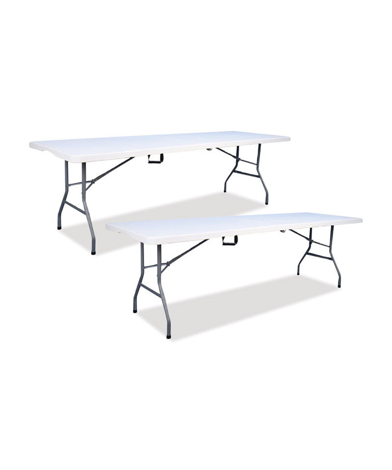 Sturdy in design, contemporary in appearance and surprisingly lightweight, Iceberg Resin-Top Bifold Tables feature a built-in carry handle and a convenient bifold format, where the tabletop folds in half while the legs fold up, to deliver an option that transports easily and stores compactly. Waterproof, scratch- and dent-resistant, the blow-molded, high-density polyethylene tabletop features rounded corners and soft-radius edges which both take away the sharp angles while allowing tablecloths to hang more neatly. Durable powder-coated steel legs with bracing bars ensure a solid, sturdy foundation. If you're looking for an indoor/outdoor table that's easy to set-up and take-down for offices, schools, trade shows, fairs, impromptu marketplaces or simply for outdoor parties, weddings and barbequesthese bifold tables might just be ideal.