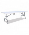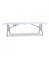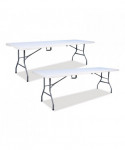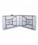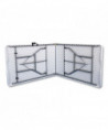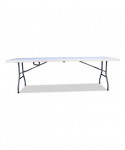 Featuring a built-in carry handle and a convenient bifold format, these tables transport easily and store compactly. Waterproof, scratch- and dent-resistant high-density polyethylene tabletop features rounded corners and soft-radius edges. Durable powder-coated steel legs provide a solid, sturdy foundation. Easy to clean.
