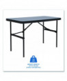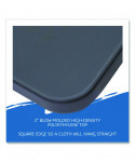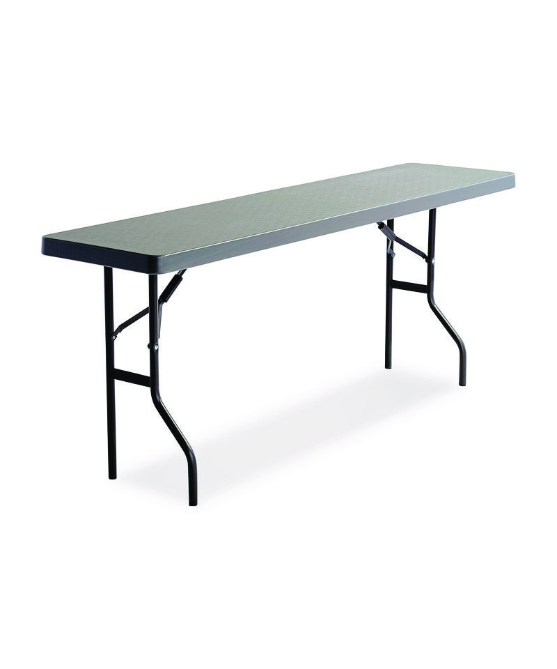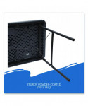Contemporary in appearance and design, IndestrucTable® Commercial Folding Tables are designed for use indoors and out. Easy to set up, take down and transport, these lightweight tables are ideal for foodservice, school and office environments as well as at weddings, banquets and any number of special events. Dent- and scratch-resistant as well as surprisingly easy to clean, the blow-molded high-density polyethylene top features a square edge, so tablecloths can hang straight, ensuring a neat and tidy table-service appearance. Sturdy, powder-coated steel-tubing legs and an all-steel base provide a solid foundation to support anything from heavy merchandise displays to a full holiday feast. Convenient recessed channels for the legs allow the table to fold nearly flat for easy, compact storage. Rubber glides affixed to each leg help protect the finish on hard flooring.