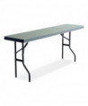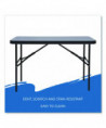 Wonderfully sturdy and attractive while easy to transport, set up and take down, these lightweight folding tables can handle nearly any temporary demand. Dent- and scratch-resistant as well as surprisingly easy to clean, the blow-molded high-density polyethylene top features a square edge, so tablecloths can hang straight. All steel base and legs with protective rubber glides.