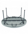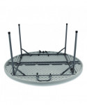 Discover the pinnacle of industrial-strength, foldable tables designed for demanding environments. Merges unparalleled durability with a robust, unobstructed design, making it the ideal choice for heavy-duty applications both indoors and outdoors. Crafted from high-density blow-molded plastic, this table is scratch-resistant, ensuring it withstands the rigors of daily use. The unique leg design, placed near the ends of the table, eliminates traditional wishbone legs that obstruct seating, allowing for extra seating capacity and comfort at both ends. This versatile table provides ample space for various activities, making it perfect for meetings, training sessions, community events or gatherings. The steel legs and the 1.75" thick blow-molded top, supported by an industrial-grade 18-gauge frame, ensure that the table remains stable on any surface. Non-slip covers on the legs protect both the table and the floor, enhancing safety and preventing damage. Best of all, its design allows for quick and easy setup—no assembly required. Simply unfold the table in seconds for immediate use, making it an ideal solution for both indoor and outdoor activities.