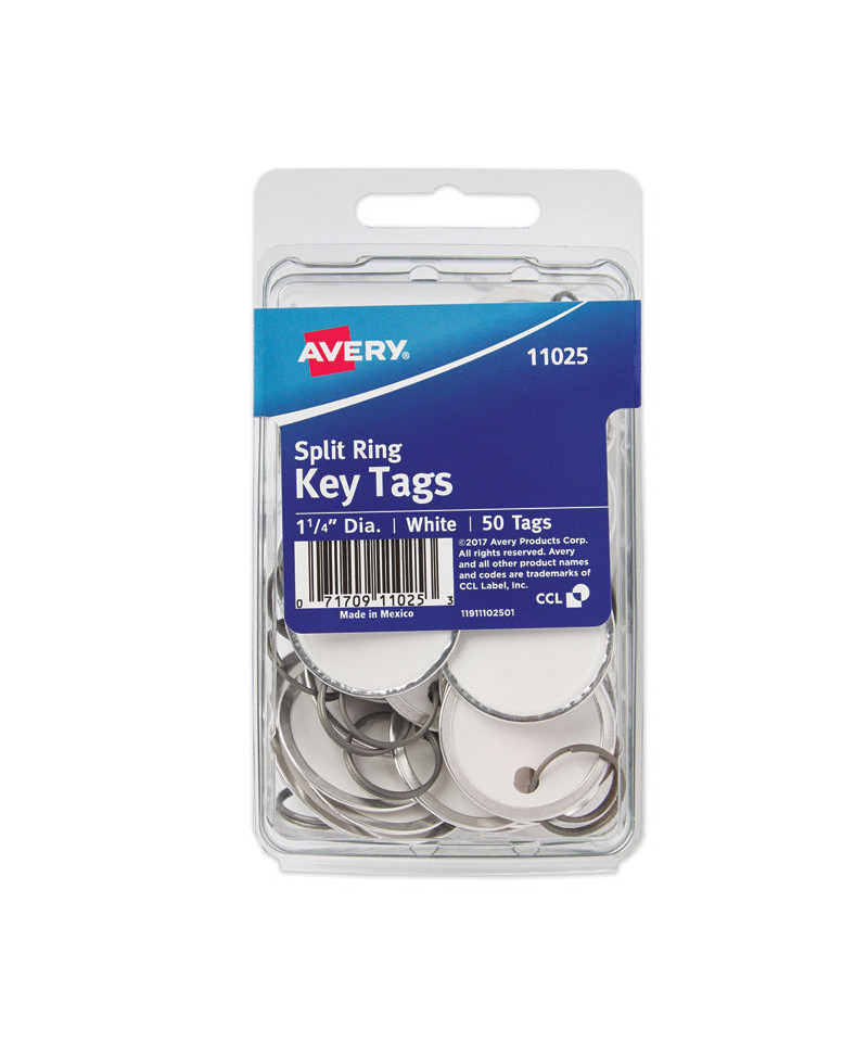 Hunting in vain for the key that fits a particular lock becomes a thing of the past with these easy-to-use Key Tags. Each tag features a split ring that slides easily onto your key for fast, convenient organization. A metal rim around the round tag aids in stability and durability for frequent handling. Inscribe your notes on white or colored tags for a clear, easily readable method of quick identification of each key's purpose. Whether you're juggling keys for automobiles, real estate or something else, these tags will help provide the key to increased efficiency.