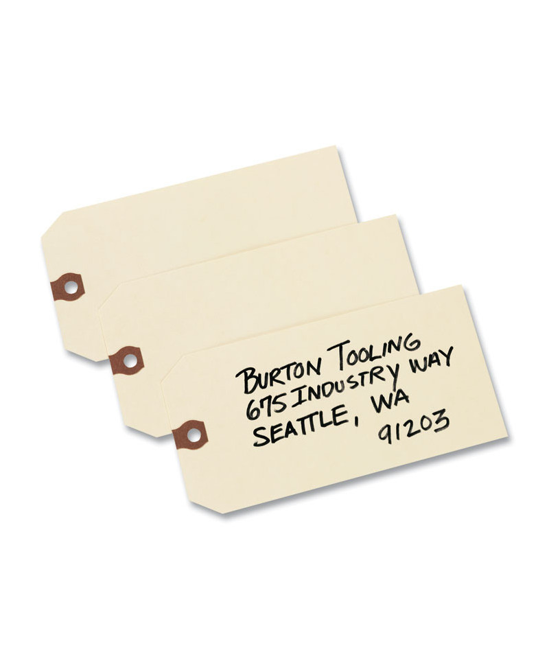 Whether you're shipping items short or long distances, you want to ensure your shipping information stays put. These shipping tags offer a smooth writing surface with a background that makes your text stand out for easy reading. Each tag features a reinforced eyelet for extra strength to hold the tag firmly without ripping through the cardstock. Tags are made of 11.5 point stock and are handwrite only.