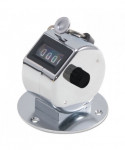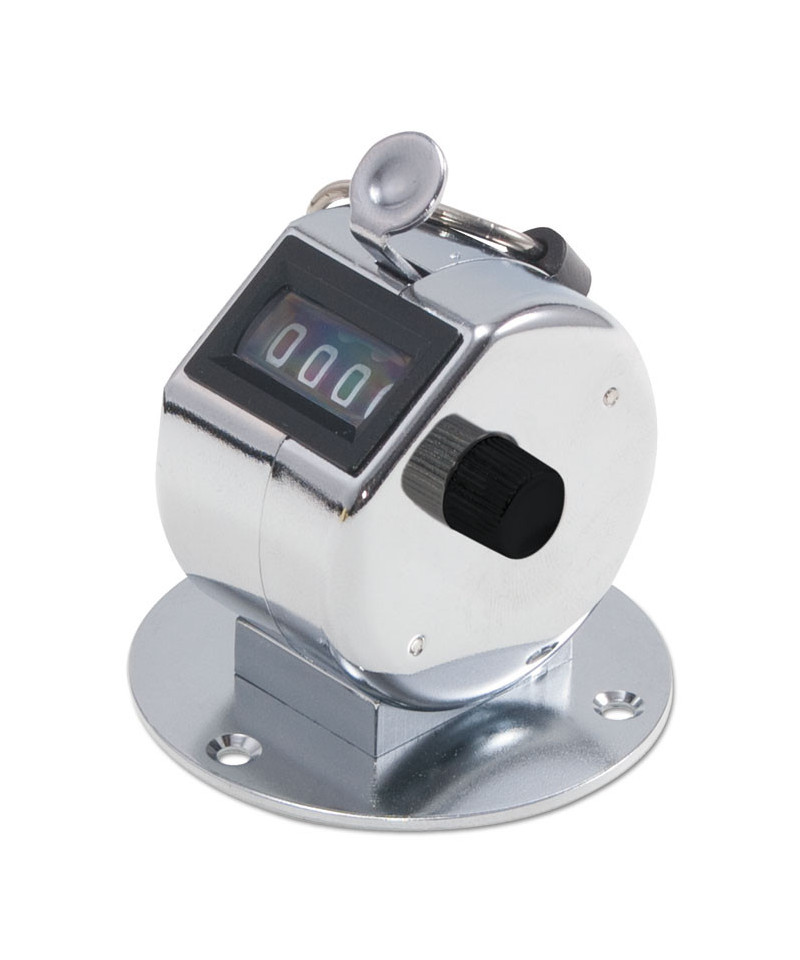 Mount this desk model tally counter to a surface where you need it. Easy to use with a thumb push to advance the count. Counter registers to 9999 and resets to zero. It's curved to comfortably fit the hand and has convenient finger ring; chrome finish.