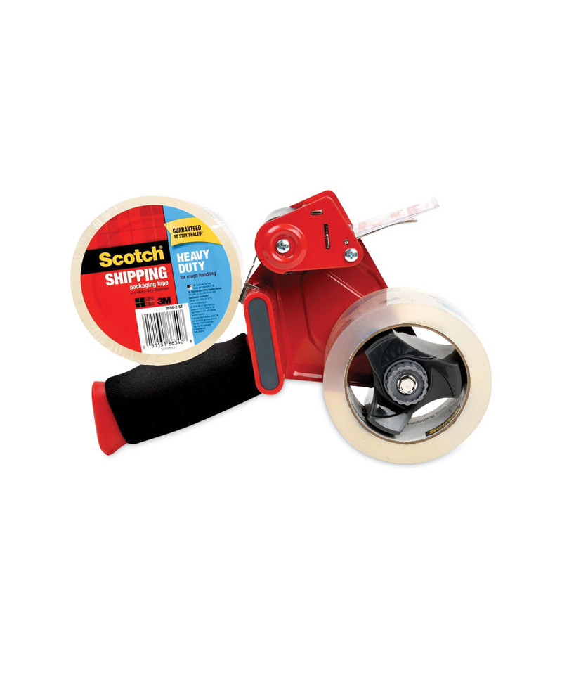 Easy-to-use, soft-touch, pistol-grip dispenser for applying box sealing tape. Adjustable braking mechanism applies tension to tape. Holds tape up to 2" wide and 60 yds. long.