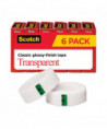 Transparent Tape, 1" Core, 0.75" x 83.33 ft, Transparent, 6/Pack