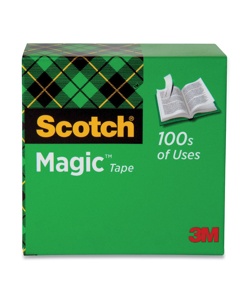 Scotch® Magic™ Tape works as hard as you do to fix all the little imperfections at home, school and the office. The Scotch® Brand's famous matte-finish invisible tape uses unique 3M adhesive technology to bond tightly with paper and disappear without a trace. Write on it with pencil, pen or marker-every word is loud and clear. Scotch® Magic Tape: Always ready for big ideas and everyday mends.