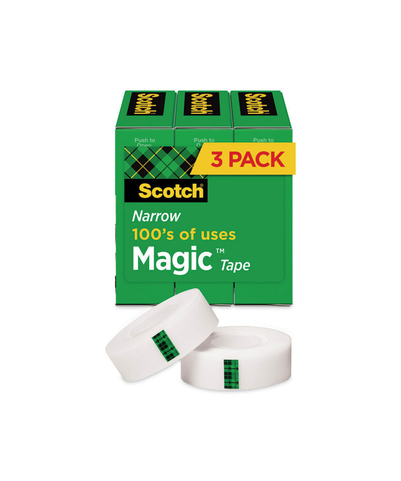 Scotch® Magic™ Tape works as hard as you do to fix all the little imperfections at home, school and the office. The Scotch® Brand's famous matte-finish invisible tape uses unique 3M adhesive technology to bond tightly with paper and disappear without a trace. Write on it with pencil, pen or marker-every word is loud and clear. Scotch® Magic Tape: Always ready for big ideas and everyday mends.