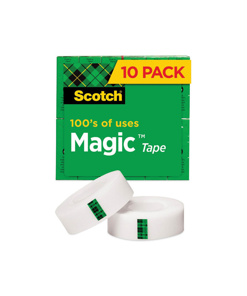 Scotch® Magic Tape works as hard as you do to fix all the little imperfections at home, school and the office. The Scotch® Brand's famous matte-finish invisible tape uses unique 3M adhesive technology to bond tightly with paper and disappear without a trace. Write on it with pencil, pen or marker-every word is loud and clear. Scotch® Magic Tape: Always ready for big ideas and everyday mends.