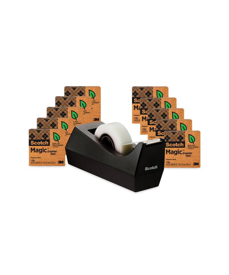 There's always plenty to do around the office. Using Scotch® Magic™ Greener Tape can help. When documents need to be displayed, packages need wrapping, important papers need mending, the strength and security of Scotch® Magic™ Greener Tape gets the job done. Like the original Scotch® Magic™ Tape, its appearance disappears but not its holding power, thanks to 3M science. You can write on it with pen, pencil or marker and it will stay clear-no blurring, fading or yellowing. And because it's made from recycled and plant-based material, you can feel good about choosing it.