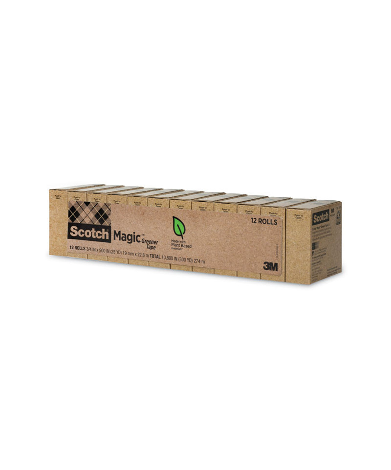 There's always plenty to do around the office. Using Scotch® Magic™ Greener Tape can help. When documents need to be displayed, packages need wrapping, important papers need mending, the strength and security of Scotch® Magic™ Greener Tape gets the job done. Like the original Scotch® Magic™ Tape, its appearance disappears but not its holding power, thanks to 3M science. You can write on it with pen, pencil or marker and it will stay clear-no blurring, fading or yellowing. And because it's made from recycled and plant-based material, you can feel good about choosing it.