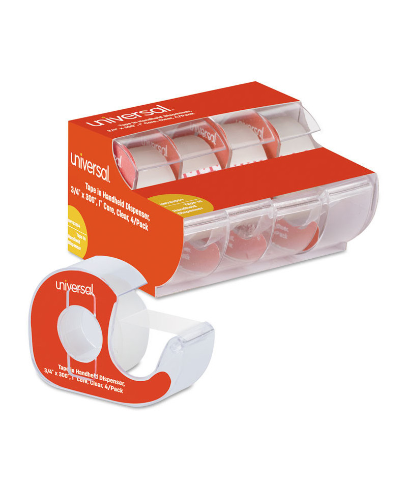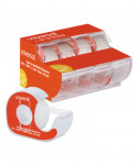Invisible tape with handheld clear plastic dispensers. Tape becomes invisible on contact with any surface. Reliable adhesive that will always provide quality use. Accepts ballpoint pen and pencil to be written on, with clear viewing. Cuts easily with the dispenser teeth or tears evenly by hand, allowing for easy use of desired amount.