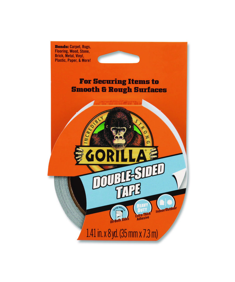 Gorilla® Double-Sided Tape is made with a strong adhesive that is thick on both sides for a heavy-duty bond. Great for securing items indoors and out. Sticks to smooth and rough surfaces including carpet, rugs, flooring, wood, stone, brick, metal, vinyl, plastic, paper, and more.