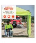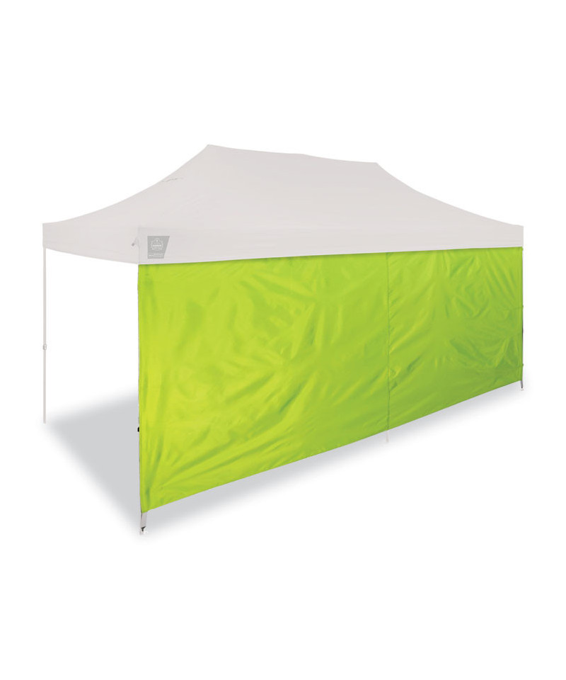 The SHAX 6097 Pop-Up Tent Sidewall lets you add privacy and protection from the sun, wind and rain. This detachable canopy side panel is sold individually and compliments the 20 ft side of the SHAX 6015 Pop-Up Tent. This fire-retardant panel is made with heavy-duty 300-denier polyester fabric with waterproofing polyurethane coating (PU) and UV treatment for added protection. The easy-to-use hook-and-loop straps securely attach the tent wall to the frame. The wind-resistant fabric packs up easily and is reinforced on the corners for added durability. The hi-vis lime color and silver coating provide increased visibility on busy jobsites or at events.