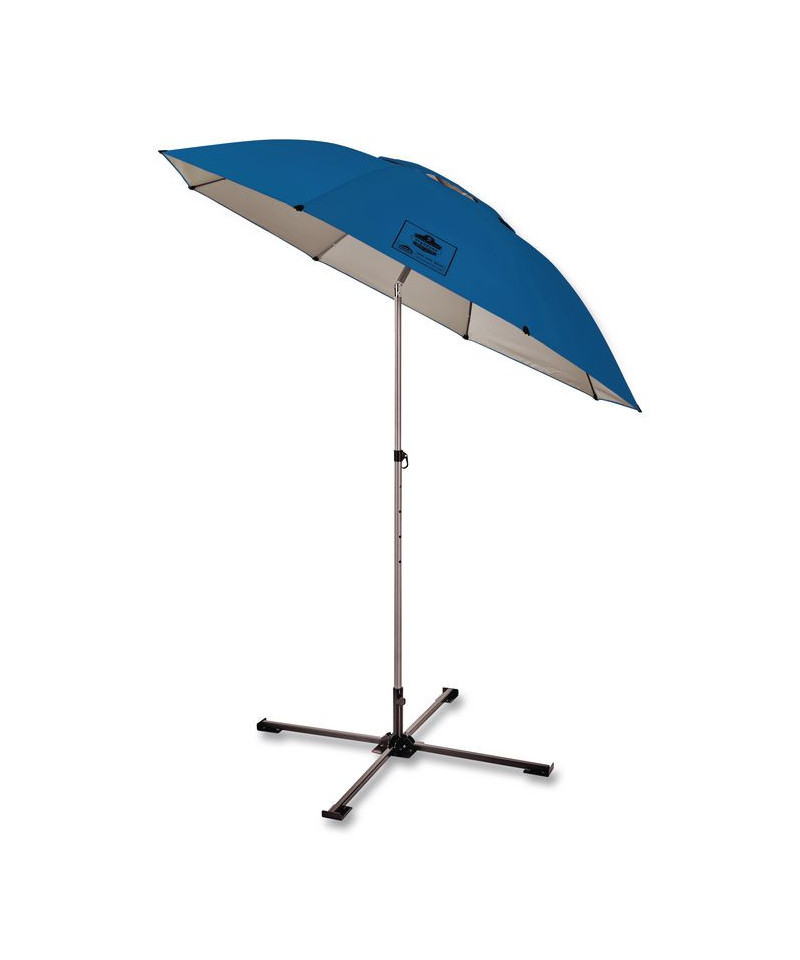 The SHAX 6199 Lightweight Work Umbrella + Stand Kit provides quick and portable relief from the elements to increase worker productivity and reduce weather-related delays. Kit includes one 6100 Industrial Lightweight Umbrella and one 6190 Umbrella Stand for securely anchoring the umbrella without using stakes. Engineered with a powder-coated steel frame, a reinforced weatherproof canopy and 300D polyester, this lightweight umbrella is built to withstand harsh elements. The unique tilt-top feature allows users to shade themselves from harmful UV rays at any hour of the day. The vented top enhances airflow and visibility, making this a great construction umbrella for scorching hot jobsites. The polyester shell features protective PU and UV coatings for shelter from sun and rain.
