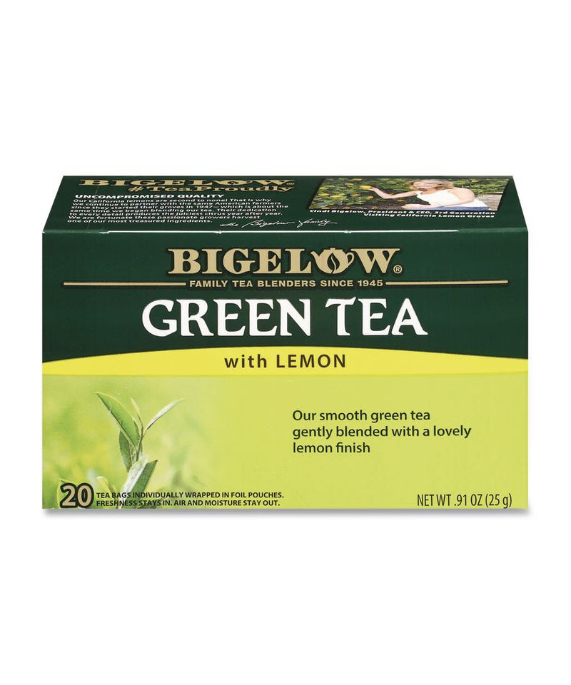 The naturally light, earthy flavor of green tea is enhanced with a hint of tangy-lemon sweetness. Smooth green tea is complemented with a lovely lemon finish. Naturally lower in caffeine.