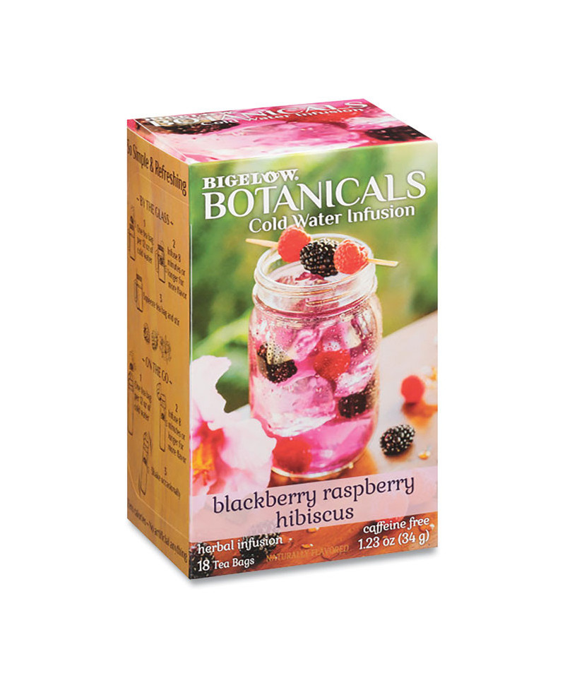 Botanicals Cold Water Herbal Infusions are a wonderfully new way to love your water. Sweet blackberries and raspberries delightfully blended with fruity hibiscus make for a simple and refreshing drink, all with zero calories and no artificial anything. Simply add water and watch these beautiful botanicals slowly create a soon-to-be favorite. No need to cut up fresh fruit or ground herbs, all the hard work has been done for you. It's so easy to create your own botanical-infused beverages, you'll soon be doing it everywhere. Each tea bag is specially wrapped in a flavor-sealing foil pouch to protect it from air, moisture and surrounding aromas. Naturally decaffeinated and gluten-free.