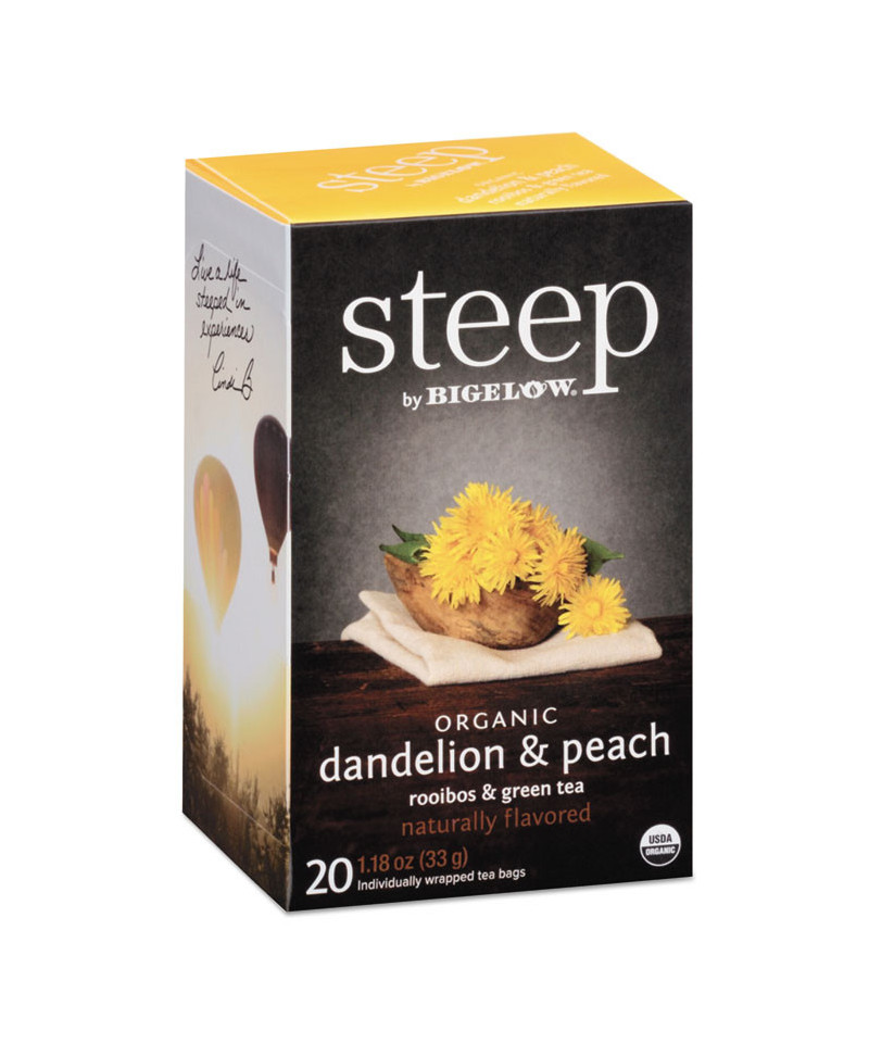 Dandelion & Peach Rooibos & Green Tea-Gentle tasting dandelion leaves blend with a delicate green tea and a sweet hint of peach, for a mild soothing flavor with earthy tones.