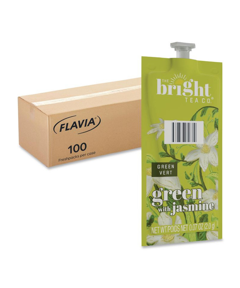 Experience the delicate balance of flavor with The Bright Tea Co.® Green with Jasmine Tea Freshpack. This light-bodied tea delivers a refreshing taste and the fragrant aroma of jasmine, creating a soothing and uplifting experience in every cup. Crafted with a unique brewing process where only hot water touches the ingredients, ensuring a pure, fresh taste free from previous brews. Fully compatible with FLAVIA® single-serve brewers for effortless brewing, it’s perfect for those who appreciate convenience without compromising on quality. Plus, the innovative pouches are 100% recyclable through Terracycle, offering a sustainable choice for your tea break. Enjoy a truly aromatic experience with every sip.