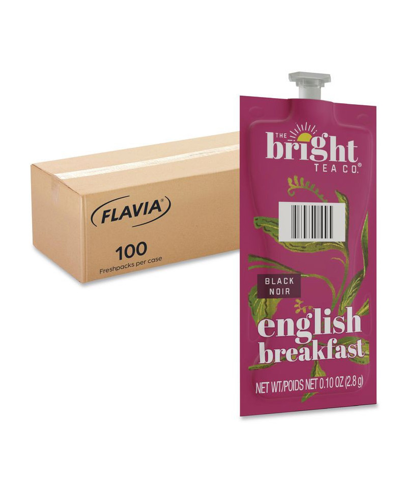 The Bright Tea Co.® English Breakfast Tea Freshpack offers a robust taste with notes of caramelized sugar, malty flavor and balanced astringency. These teas from the Assam river valley in North Eastern India provide a flavor profile strong enough to stand up to milk and sugar, but flavorful enough to be enjoyed without. Our brewing process, where nothing touches the ingredients other than hot water, ensures your drink does not taste like previous brews. Compatible with FLAVIA® single-serve brewers. For single-serve sustainability, innovative pouches are 100 percent recyclable through Terracycle.