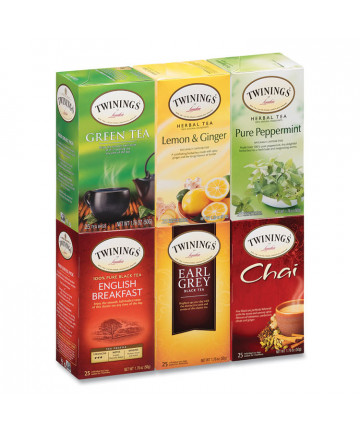 Add to cart Tea Bags, Assorted, 25/Box $40.99 TWININGS® master blenders travel the world seeking only the finest teas, spices, herbs and fruit infusions available, then expertly blend each one...