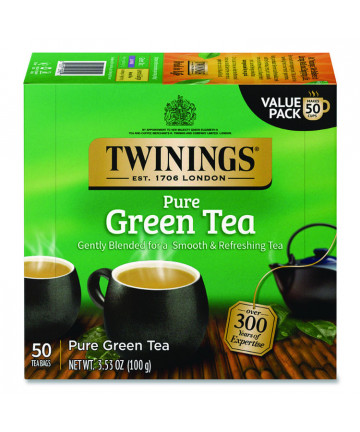 Add to cart Tea Bags, Green, 3.53 oz, 50/Box $16.21 TWININGS® master blenders travel the world seeking only the finest teas, spices, herbs and fruit infusions available, then expertly blend each one...