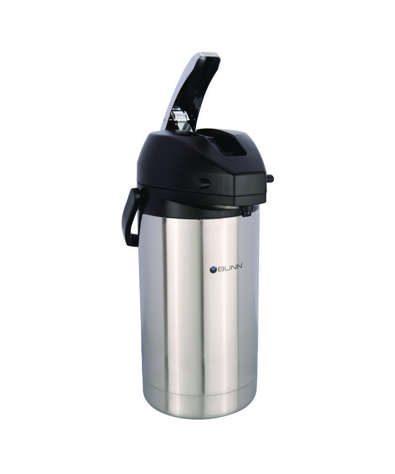 Brew-thru lid allows users to conveniently brew directly from brewer. Beverage dispenser features an all-stainless steel construction and lever style pump for easy serving. Seamless stainless steel vacuum liner is durable and ensures beverages remain cold or hot for hours. Lid is designed to swing open fully to brew directly into airpot funnel for ease of filling and maximum heat retention.