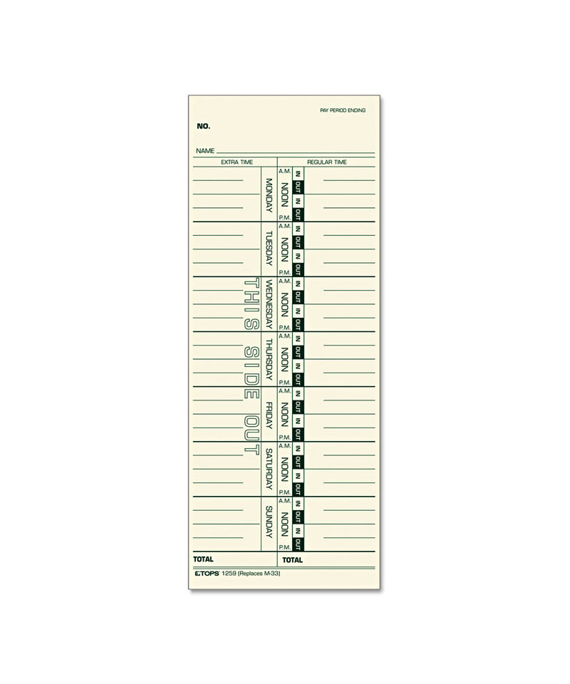Time Clock Cards, Replacement for M-33, One Side, 3.5 x 9, 500/Box
