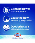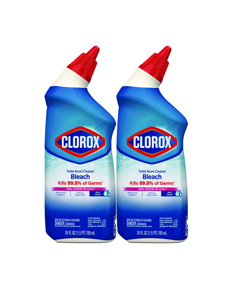 Clorox® Toilet Bowl Cleaner with Bleach kills 99.9% of germs, including COVID-19 virus (SARS-CoV-2) when used as directed on hard, nonporous surfaces. Whitens and brightens your toilet bowl with the trusted power of Clorox® Bleach. This powerful bleach cleans your toilet bowl while it destroys tough stains, disinfects and eliminates odors with a refreshing scent. The only toilet bowl cleaner with Clorox® Bleach, it cleans and leaves toilets sparkling and bright. Deodorizes as it whitens and brightens. Uniquely angled, this dispensing nozzle makes it easy to tackle hard-to-reach areas under the bowl rim with a simple squeeze of the bottle. Flush toilet. Apply six ounces under and around the rim. Scrub entire bowl. Let sit for five minutes. Flush toilet. Disinfect and get your toilet squeaky clean with Clorox® Toilet Bowl Cleaner with Bleach.